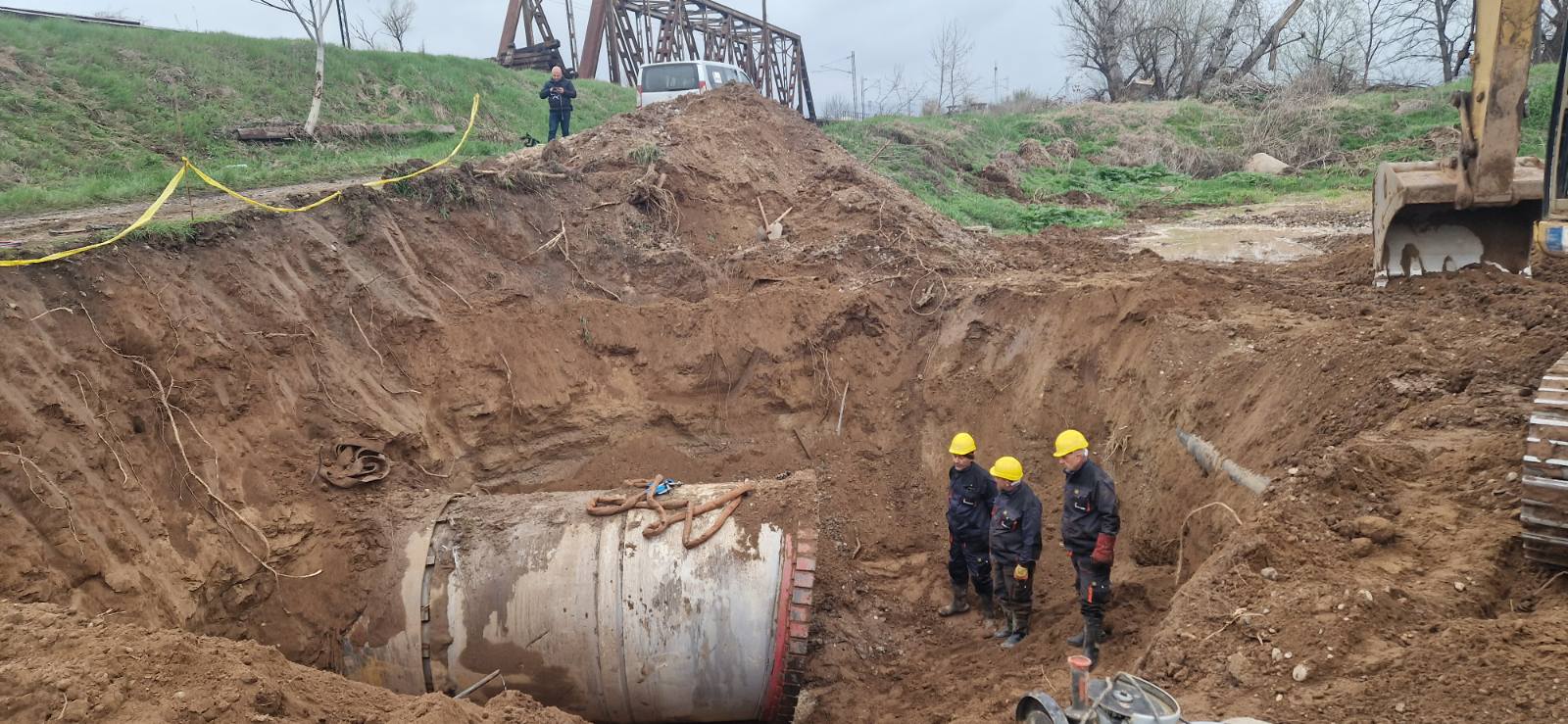 Završni radovi: Po završetku radova kranom je izvađena glava za mikrotuneling u izlaznoj građevinskoj jami.